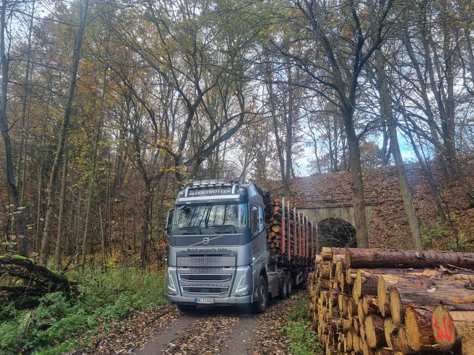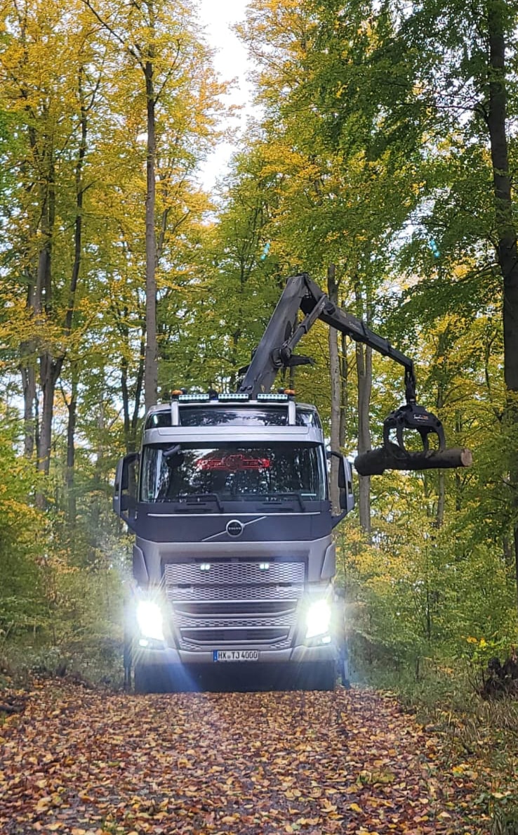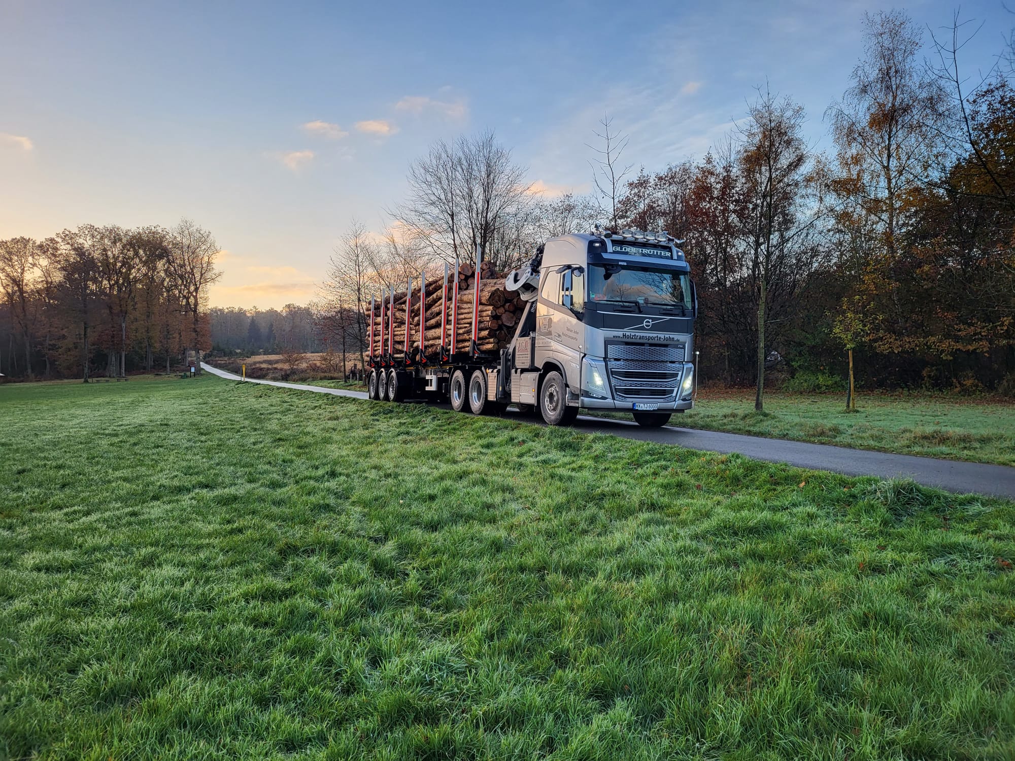 Wir bringen Ihr Holz sicher auf die Straße und sorgen mit unserem eingespielten Team für einen reibungslosen Ablauf des Transportes — vom Waldweg bis zum Bestimmungsort.